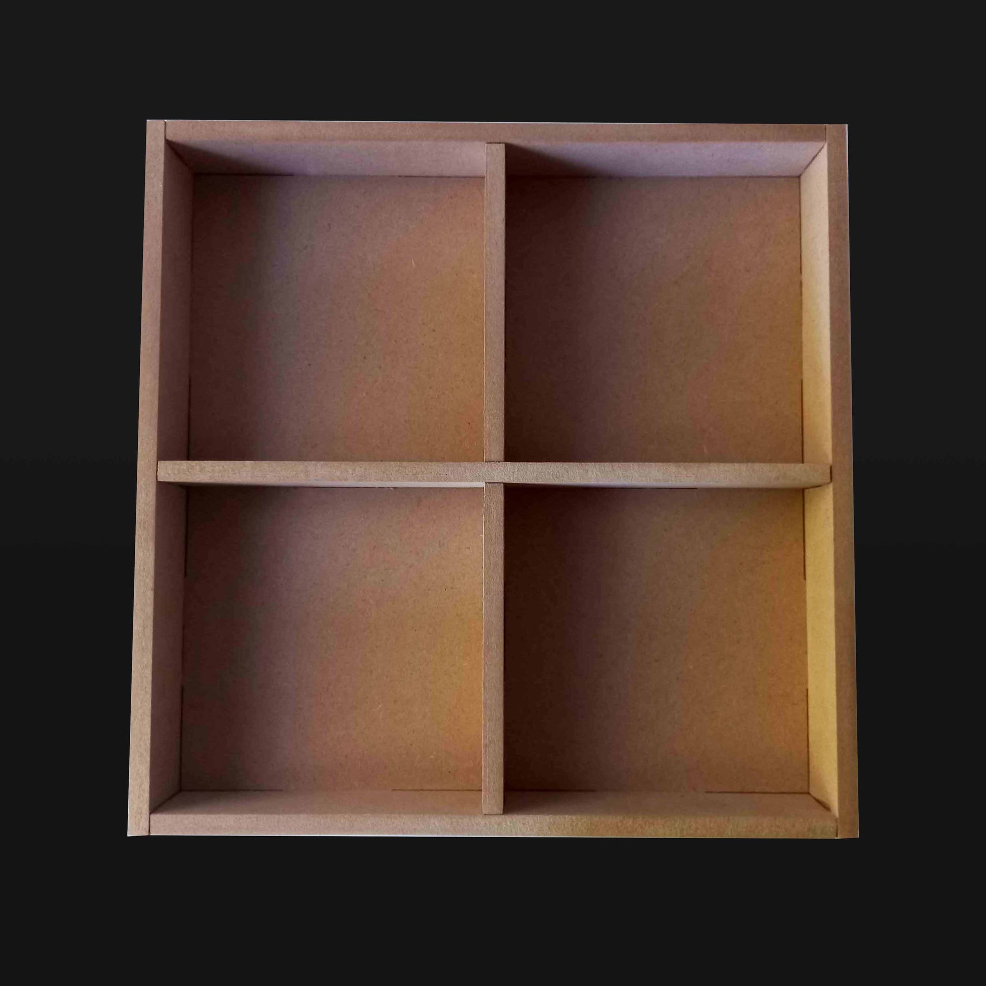 Each compartment is 14.5cm x 14.5cm wide on the inside, 4 compartments in total.