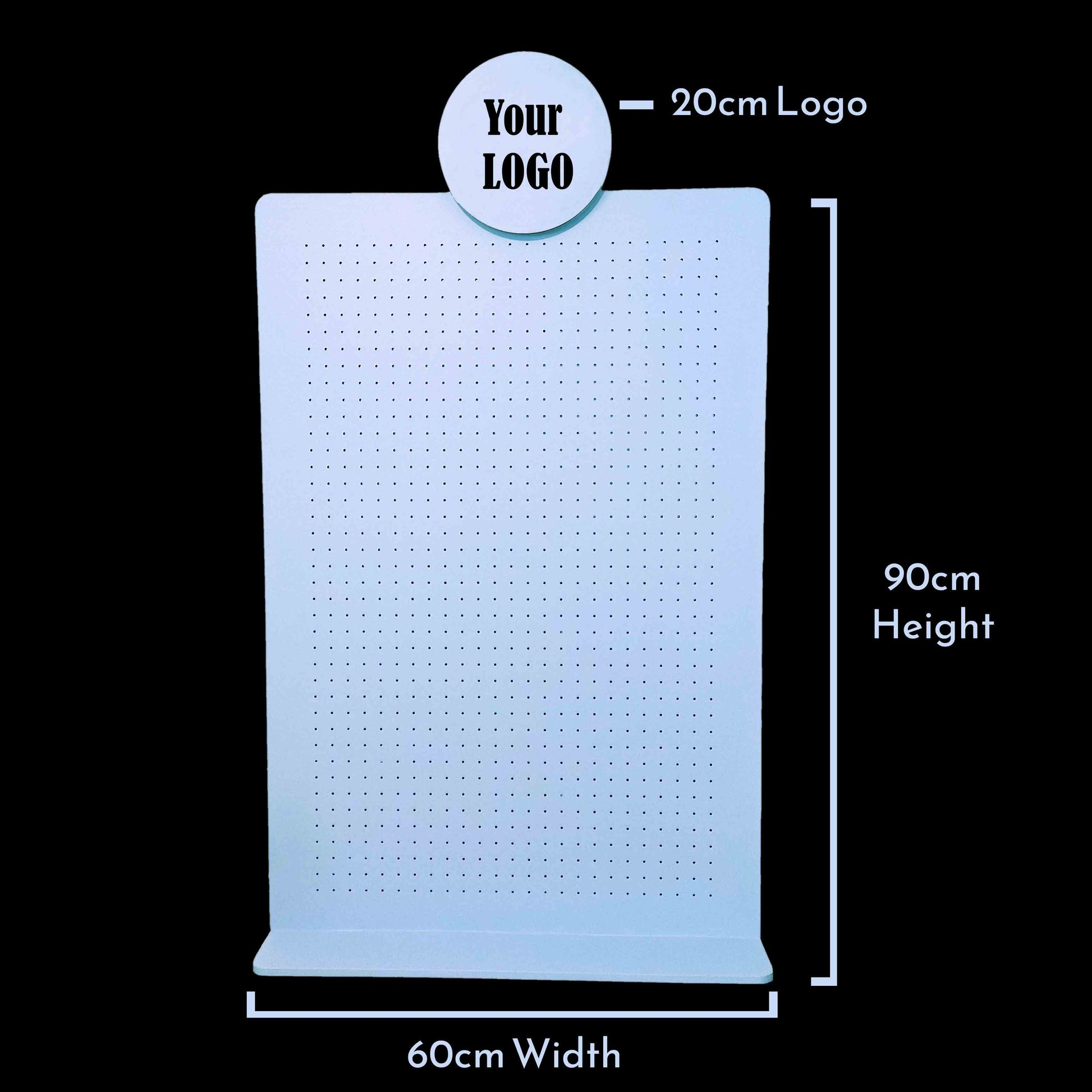 Large Table Pegboard Display Stand made of MDF wood to showcase your products. The pegboard is 60cm wide and 90cm high. The perfect size for craft markets and gift fairs if you want to display many different items on a small table space. Can be used for Earring cards, crochet items, bracelets, necklaces, scrunchies, keyrings and many other items.